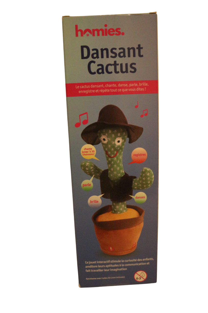 Het speelgoed kan zingen, dansen en gloeien, en herhaalt wat je zegt. Het is gemaakt van pluche materiaal dat veilig is voor kinderen. Het stimuleert de nieuwsgierigheid van kinderen en verbetert hun communicatieve vaardigheden. De cactus kan tot wel 30 populaire liedjes spelen.