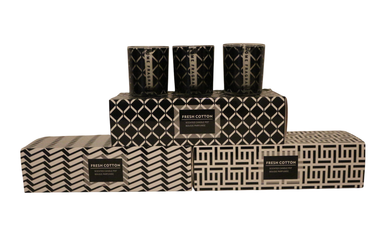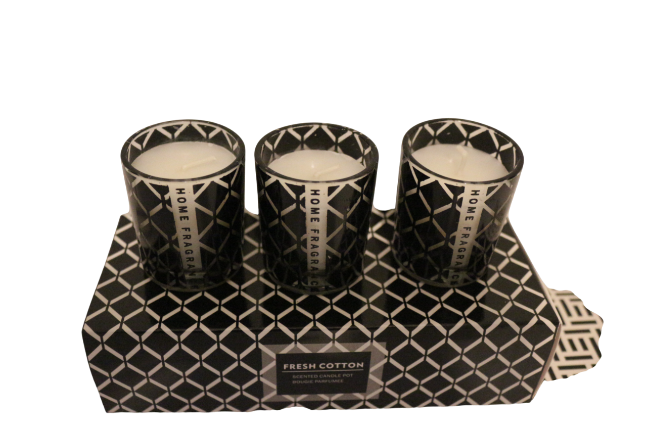 Gotton geur, 3 stuks in een doosje. Drie geurkaarsen van Gotton in een glaasje.
