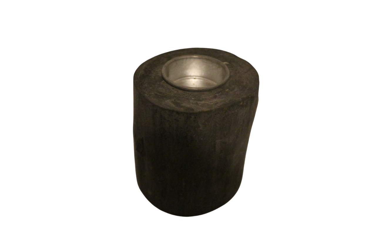 het hout is uitgehold voor een ijzeren bakje om het waxinelichtje in te plaatsen.