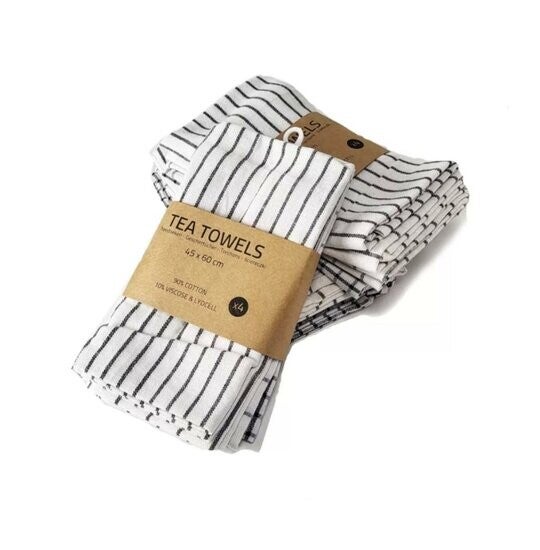 Deze set theedoeken bestaat uit vier stuks met een formaat van 45 x 60 cm. Ze zijn gemaakt van 90% katoen en 10% viscose en Lyocell, wat zorgt voor een zachte, duurzame kwaliteit. De kleurencombinatie van wit en donkergrijs past perfect in elke keuken. Met vier verschillende prints brengt de set variatie en een stijlvolle uitstraling. De theedoeken zijn niet alleen praktisch, maar ook een mooie toevoeging aan het interieur van de keuken.