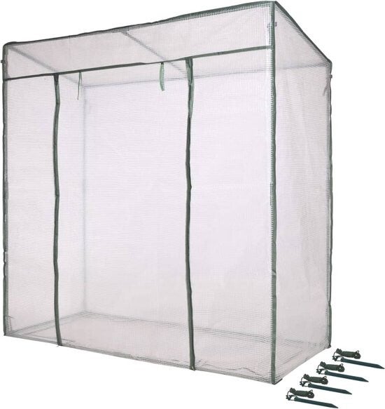 Tomatentuinkas met metalen frame met epoxycoating (Ø 18 mm). De hoes is gemaakt van UV-bestendig, versterkt polyethyleen en is voorzien van ritssluitingen, scheerlijnen om de kas te verankeren en 3 vensters voor een optimale ventilatie. De foliekas werkt ook als een soort serre voor uw tomatenplantjes: ze zijn bestand tegen diverse weersomstandigheden en kunnen ze in een prettig klimaat tot bloei komen. Natuurlijk kunt deze kas ook gebruiken om andere gewassen te kweken, zoals paprika's en aubergines.